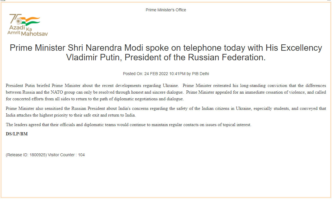 Earlier on February 24, the official Twitter account of the Indian Embassy in Hungary informed about efforts undertaken by the Indian government to rescue stranded Indians in Ukraine.