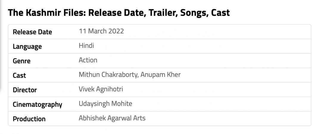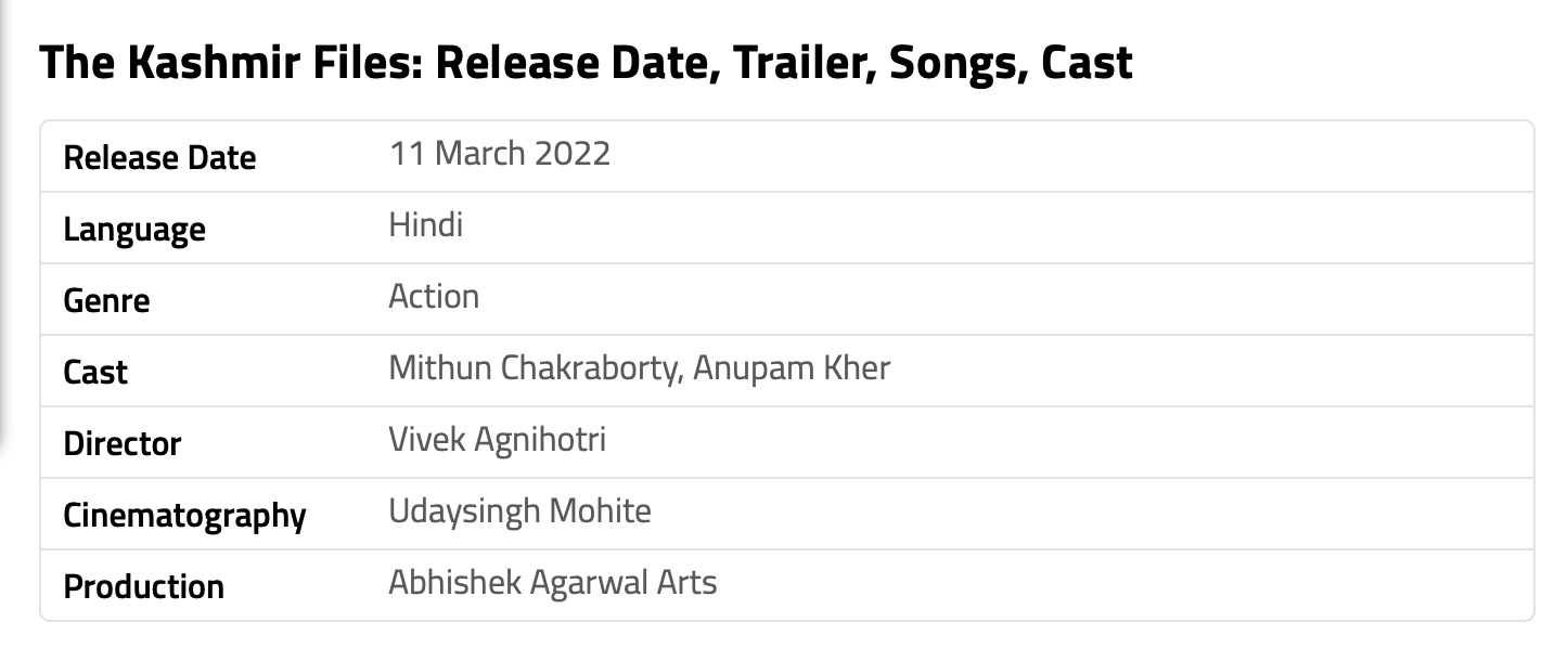 Interestingly, the NDTV article on The Kashmir Files has no publishing date stamped on it. Usually, most articles would have a date of publication that is displayed prominently in the beginning of the article. The NDTV article, however, masks that date.