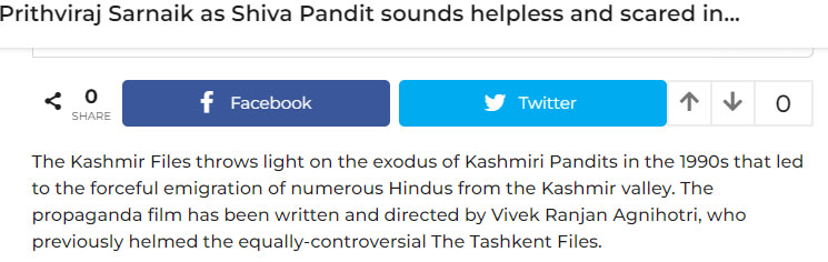 The entire shenanigan by NDTV makes it amply clear that they were out to vilify the movie The Kashmir Files simply because it shows the plight of Kashmiri Hindus and that does not suit their narrative. Not only did NDTV call it a ‘propaganda film’ without any proof, but they also tried to ensure that the phrase was pegged with the movie by other websites as well.