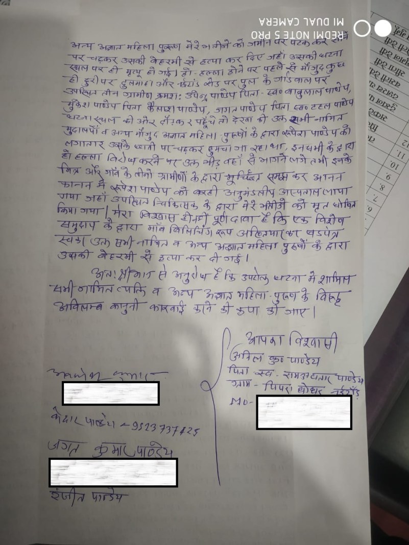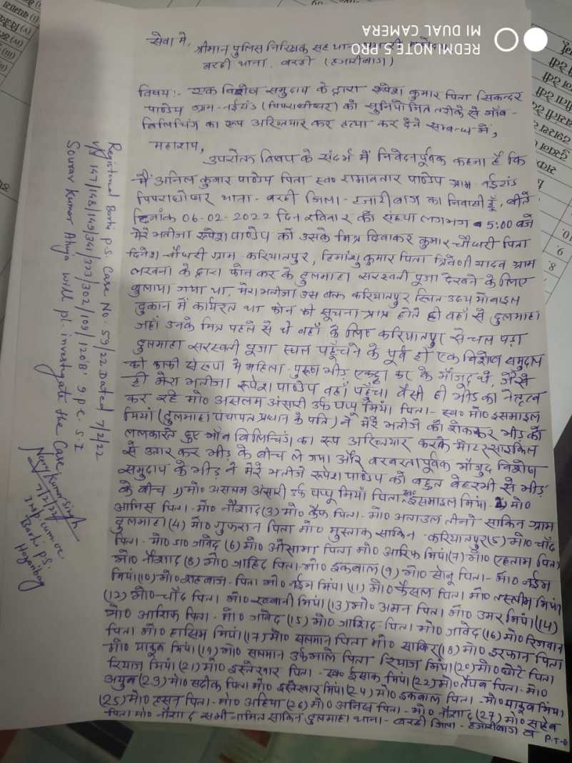 The initial report filed by Anil Kumar Pandey, Rupesh’s uncle narrates the exact episode of Rupesh’s murder. According to the report, Rupesh was sitting in the mobile shop at around 5 pm on February 5. Some of his friends invited him to the Saraswati puja. Suddenly the Muslim crowd led by Aslam Ansari alias Pappu Miya approached Pandey and started beating him.