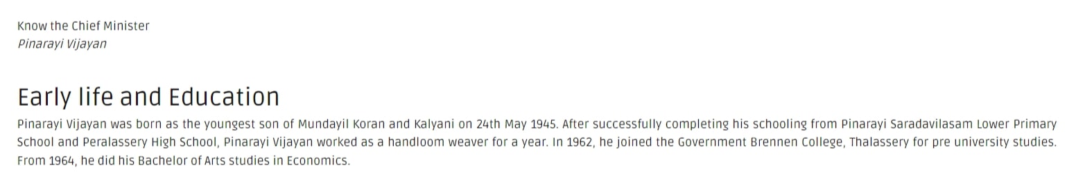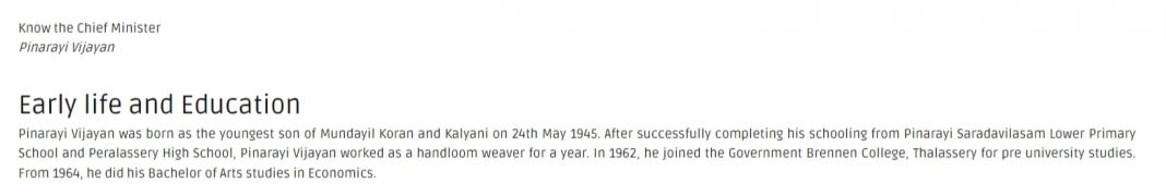 Official Kerala CM website claims Pinarayi Vijayan is a graduate