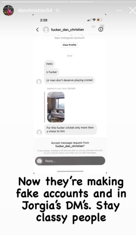 In a follow-up story, Christian wrote, “Now they are making fake accounts and in Jorgia’s DM’s. Stay classy people.”
