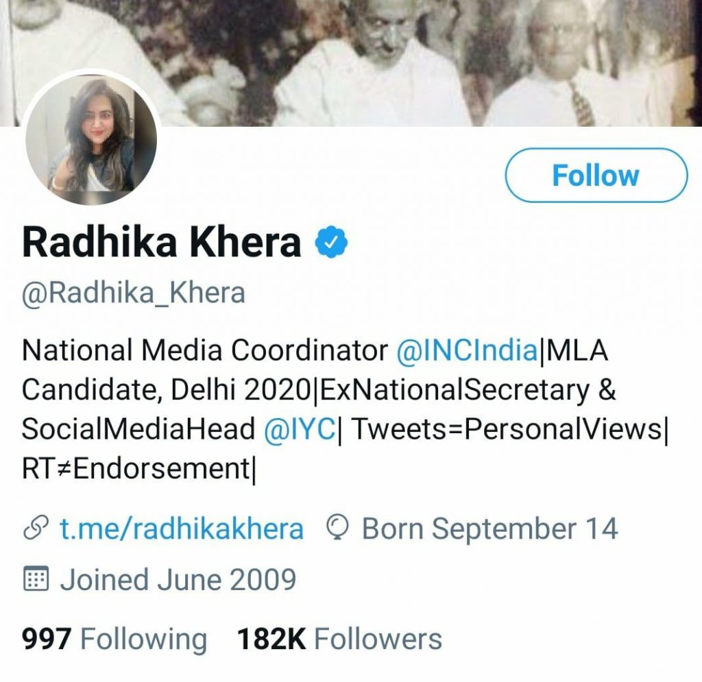 Her bio on Twitter reveals that she was an MLA candidate from Delhi in 2020 and has previously been the national secretary and social media head of the youth wing of the Congress party.