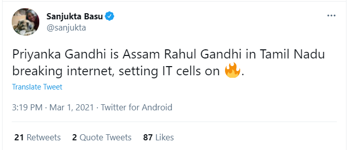 This excessive adulation is not just limited to Rahul Gandhi alone. Even his elder sibling, Priyanka Gandhi, is venerated and idolised to the same extent. Priyanka Gandhi was recently in Assam, canvassing for the upcoming Assembly polls and interacting with the local people. But what had the Congress functionaries and leaders in awe of the Gandhi scion was not the promises she made or assurances she gave. Instead, they were dazzled with her smile.