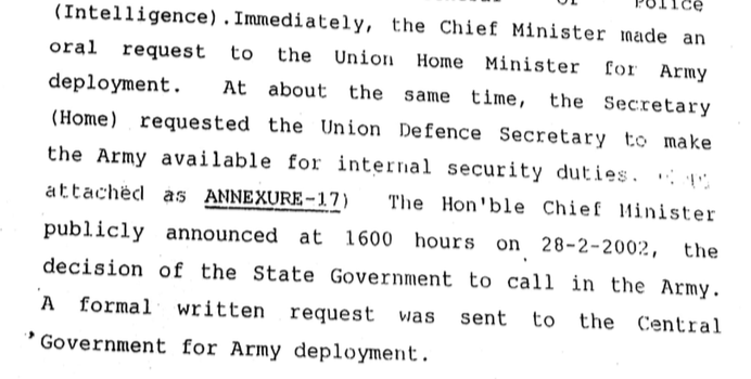 Chief Minister of Gujarat, Narendra Modi requesting for Army on 28th February 2002