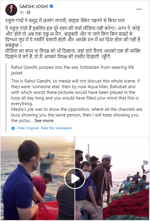 Echoing similar sentiments as Kapri, Sakshi Joshi, who has now turned into a YouTuber, said that media would have given space to Rahul Gandhi and would hail him as ‘Aqua Man’, ‘Bahubali’ if it was somebody else. Amusingly, Joshi claimed that it was the media’s job to show the opposition.