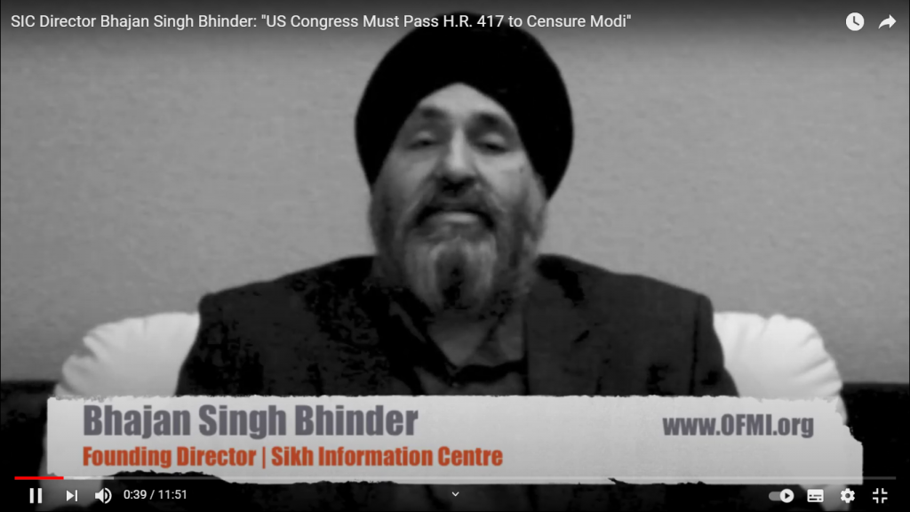 In these videos, Bhinder’s designation is as the Founding Director of Sikh Information Center. Bhinder advocates for the release of convicted Khalistani terrorist Davinderpal Singh Bhullar in one of the videos. In another, he calls upon the U.S. Congress to pass a house resolution which would condemn Modi and India. At this point in time, Pieter Friedrich and Bhajan Singh Bhinder became intertwined with each other.