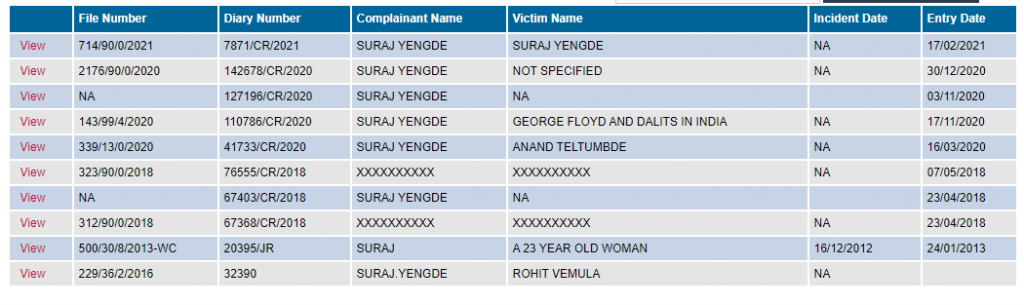 There is one complaint where the victim is Anand Teltumbde, who was arrested in connection with the Bhima Koregaon case. There is another complaint where the victim is “George Floyd and Dalits in India”.