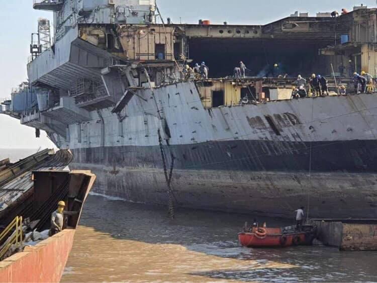 Photographs of the dismantled ship that have appeared on social media show that the ski-ramp of the carrier has already been removed, and the dismantling process of the deck is well under process. The images show that not just the upper deck, but the process of dismantling even the lower decks have also started, and the superstructure of the hull also have been dismantled to a significant extent. This shows that it will be almost impossible to restore it back to preserve it, and even if that is done, it will be very costly.