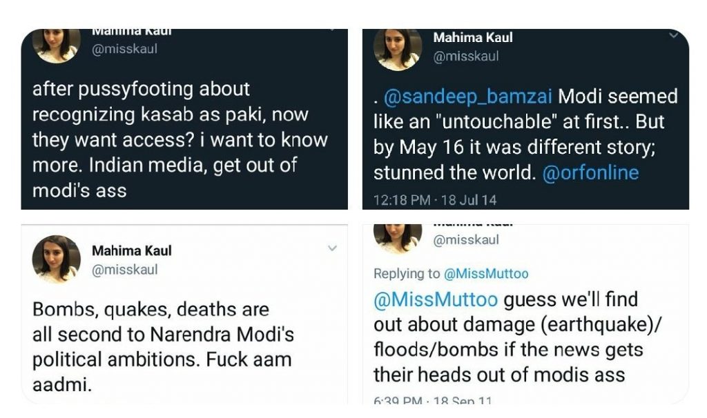 Mahima Kaul’s now-deleted tweets (image courtesy: @iankursingh on Twitter)