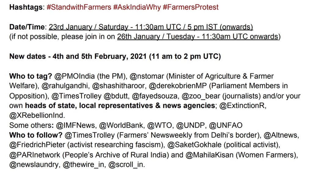 One of the documents embedded in the toolkit, titled ‘Solidarity with Indian farmers – Twitter storm’ contains meticulous planning about the tweets to be posted to ‘garner international attention’ to the ‘farmer protest’. It is this document that listed the tweet by Rihanna and the support by Greta Thunberg and it was on the basis of this documented that we had concluded that Rihanna’s tweet was not spontaneous and indeed, planned well in advance.