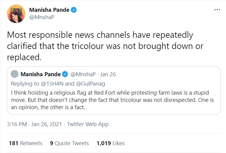 Manisha Pande, a meme creator at Newslaundry, has also tried to nullify the Khalistani angle in the ongoing ‘farmer protests’.