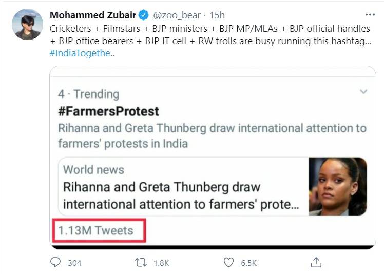 Initially, it was not clear why was he indulging in such an act. As usual most of the social media ignored him as Zubair has a notorious history of supporting anti-Indian elements.