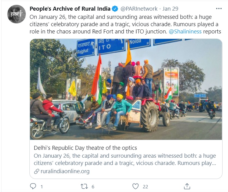 Here are a series of tweets posted by Newslaundry that several social media users used to peddle misinformation on the farmer protests and whitewash the violence perpetrated by rioters on Republic Day.