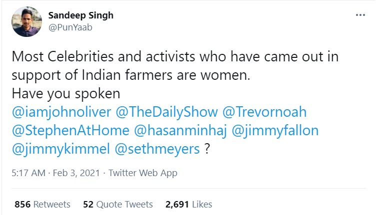 Sandeep Singh, is another social media user whose tweets are being aggressively shared by left-wing and foreign accounts to put out posts against the Modi government.