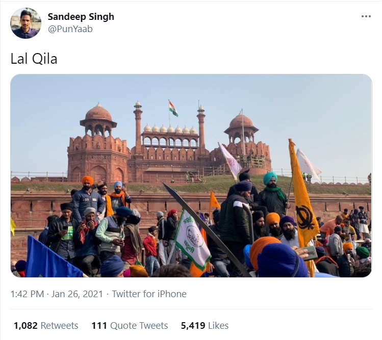 On the day, rioters carried insurrection against the nation, Sandeep Singh was cheering them on social media. Incidentally, his tweets will also be posted repeatedly in the near future to target the Indian government.