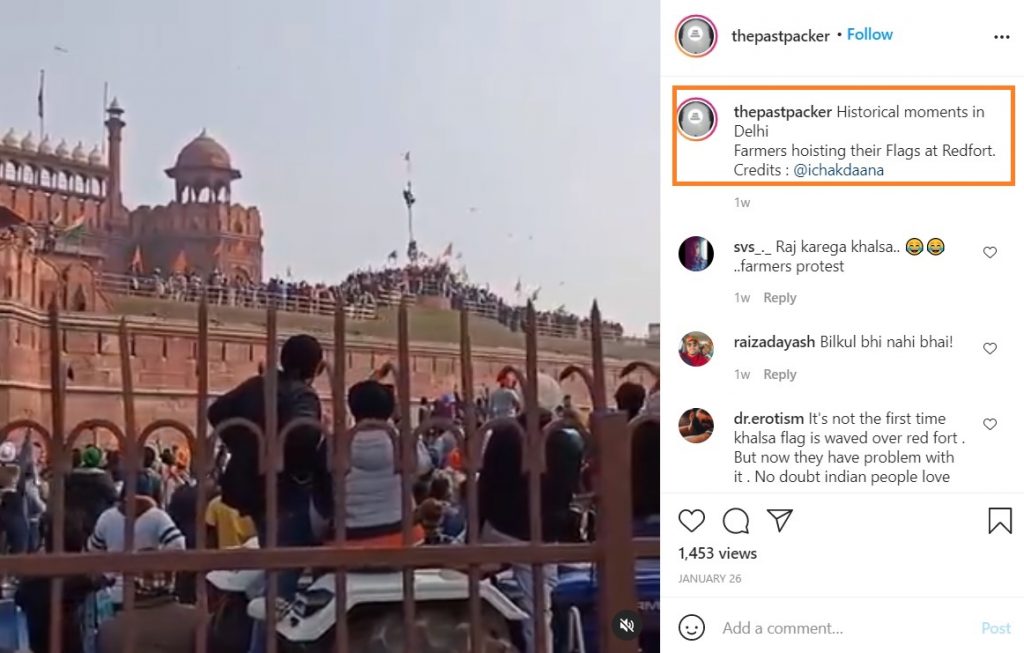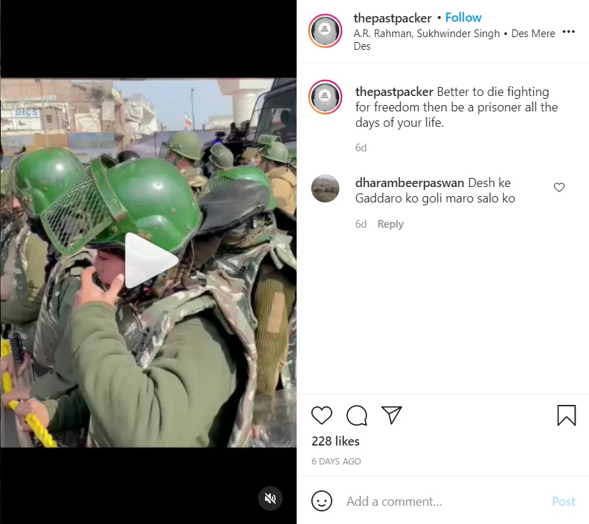 Another Punjab-specific Instagram account – The Past Packers has time-and-again glorified rioters. In a recent Instagram post, it had called the Republic Day insurrection as a ‘historical moment’.