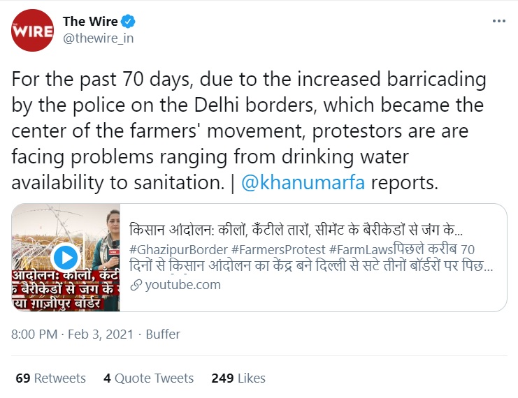 The Wire has been no exception in terms of the hatred it tends to exhibit against the country’s ruling dispensation. Ever since the Indian government democratically passed the three farm laws, the self-proclaimed media outlets such as ‘The Wire’ have been putting misinformation.