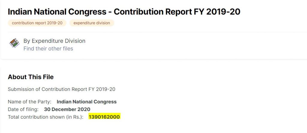 Congress’s contribution report for 2019-20 uploaded on the official ECI site