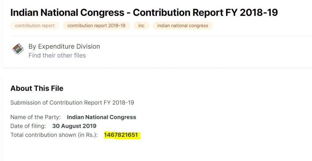Congress’s contribution report for 2018-19 uploaded on the official ECI site