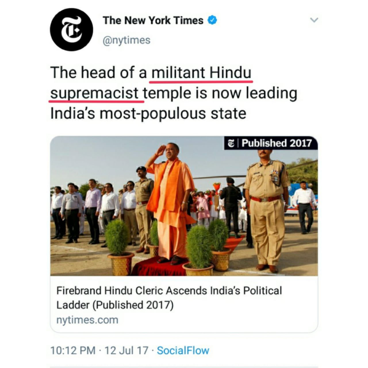 As for Yogi Adityanath, The New York Times went as far as to call Yogi Adityanath the head of a militant temple and insulted the Gorakhnath Temple, one of the most important Temples of the Nath Tradition in Hinduism.