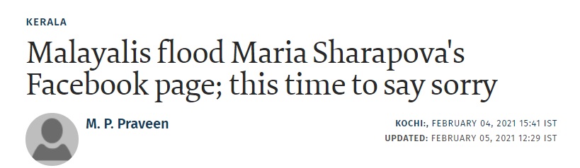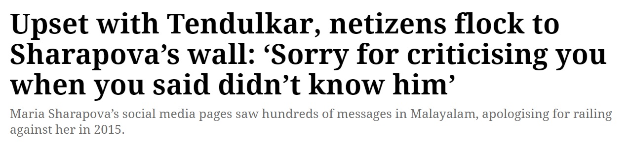 Following the incident, several social media users had ridiculed, abused the tennis player for not knowing one of the greatest batsmen of the era. Ironically, it was a section of social media users from Kerala who had led the massive outrage against Sharapova back then in 2014.