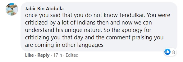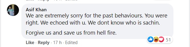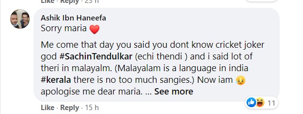 Ashik Ibn Haneefa referred to Sachin Tendulkar as a ‘Joker’ as he asked for forgiveness.