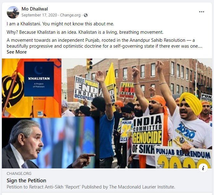 Mo Dhaliwal is Founder and Director of Strategy at Skyrocket. He co-founded the Poetic Justice Foundation. He is a Khalistan supporter and has openly supported Khalistan. In September, when Macdonald-Laurier Institute, a leading Canadian think tank based out of Ottawa, had released a study on Pakistan’s role in nourishing Khalistani extremism, Dhaliwal used his NGOs platform to support Khalistan.