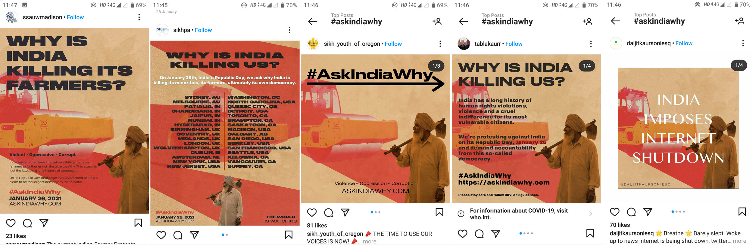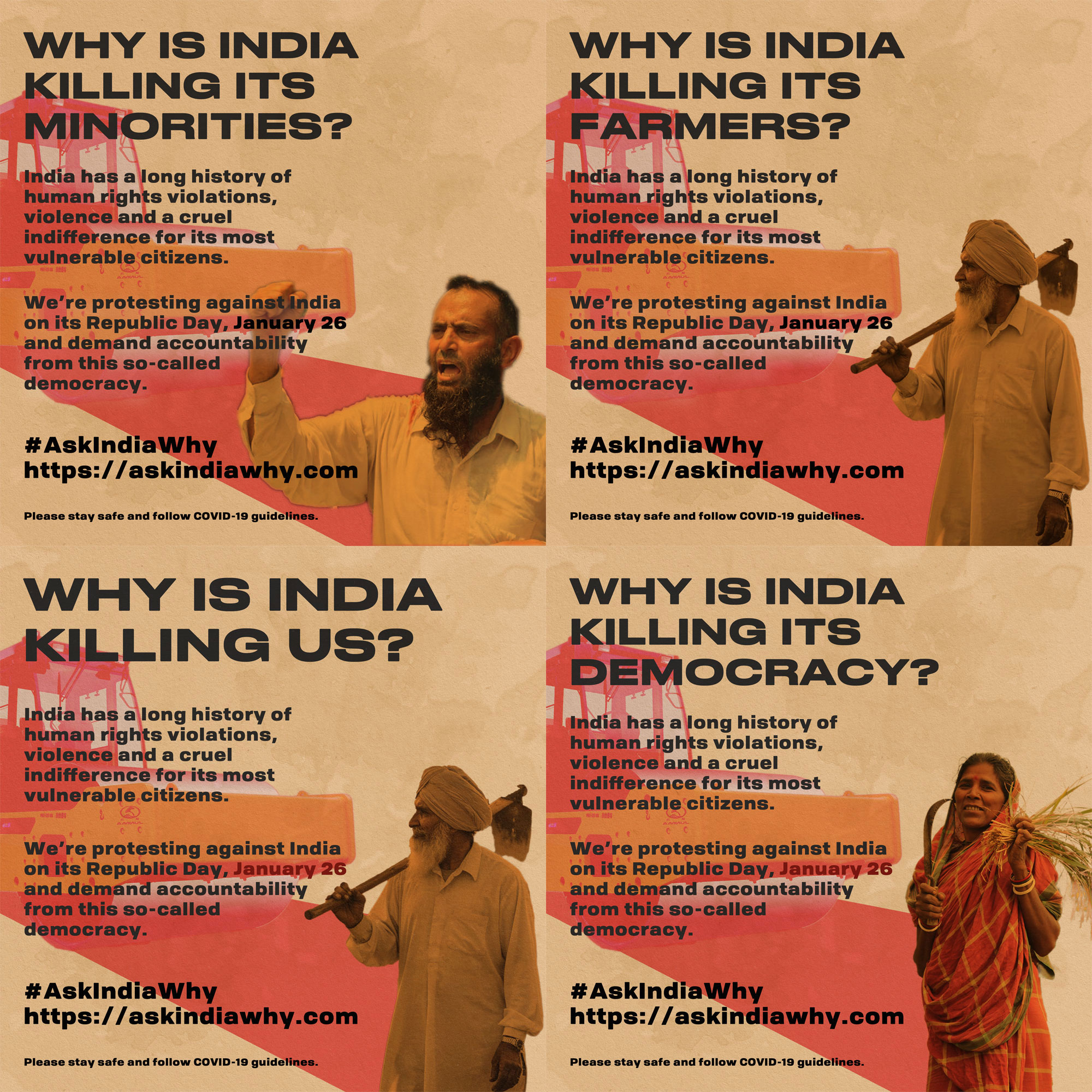 These images/posters were shared on PJF’s and ‘Ask India Why’ campaign’s social media pages. These images/posters were available in vector format. The maximum size that one can print was 10ft x 20ft. Here are four examples of such posters.