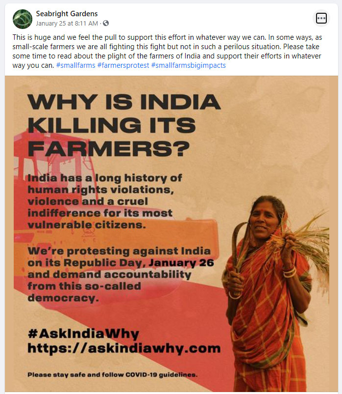 Under the ‘Ask India Why’ arm of PJF, the organization urged the public to join in the Global Day of Action not only to put pressure on the Indian government to repeal the laws but to cause more disruption in the future. The plan is not limited to farmer protests, but, as the documents suggest, it extends to making attempts to divide Indians.