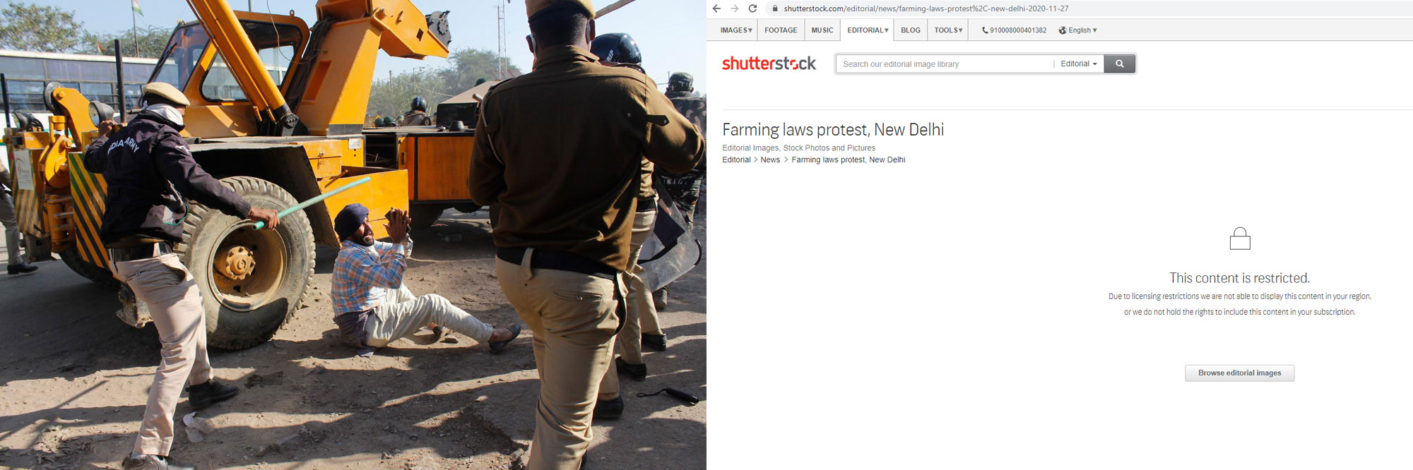 Propaganda image that was available in media kit and screenshot of Shutterstock’s site saying the image is not accessible in India.