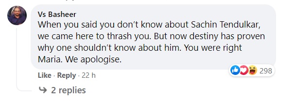 Another Muslim social media user and an active worker of the LDF saying ‘Sorry’ to Maria Sharapova.
