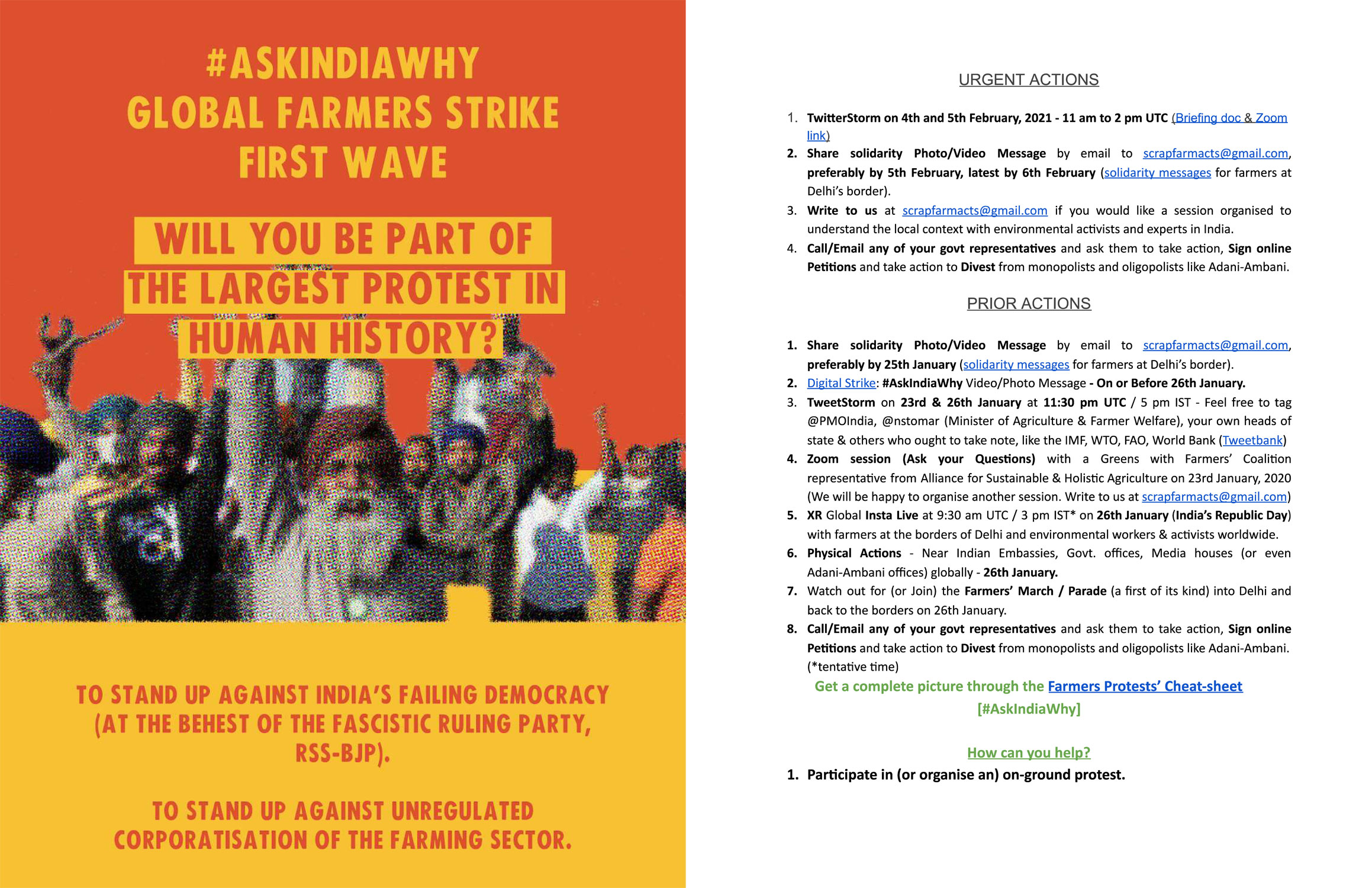 The document, titled, ‘Global Farmer Strike First Wave’, implores individuals across the world to be a part of the ‘largest protest’ in human history. The objective is, apparently, to protest against the ‘unregulated corporatisation’ of the farming sector.