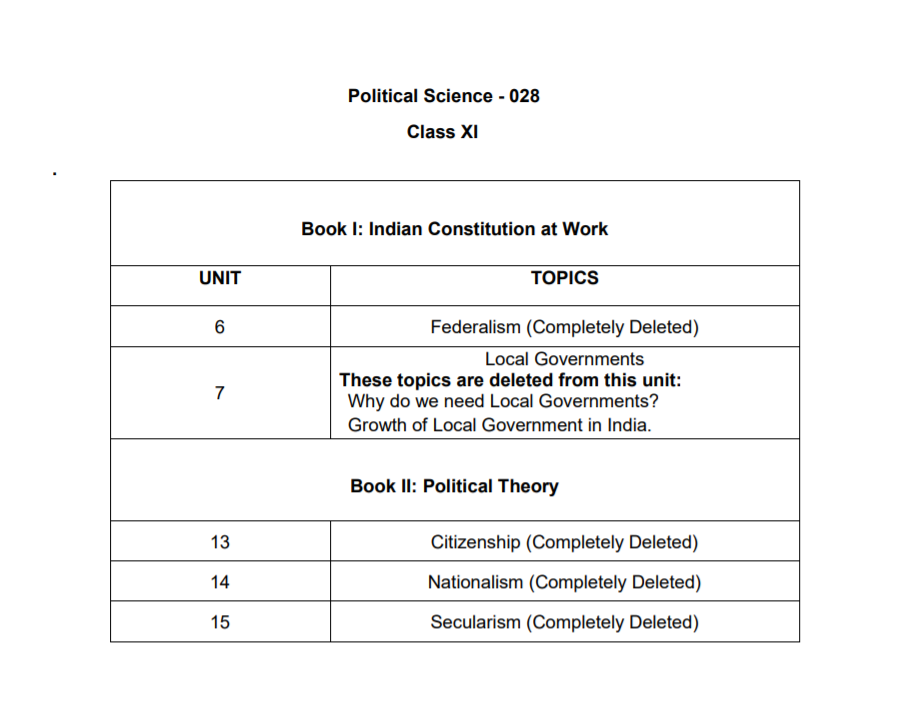 In the new Class XI syllabus, chapters on ‘Secularism, federalism, citizenship, nationalism have been deleted.