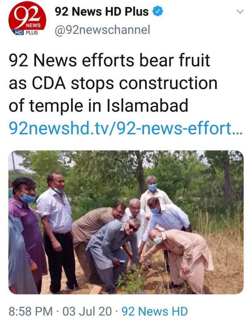 Interestingly, a Pakistan news channel, 92 News HD Plus, had taken credit for spearheading the Islamist agenda of stopping the construction of the Hindu temple.