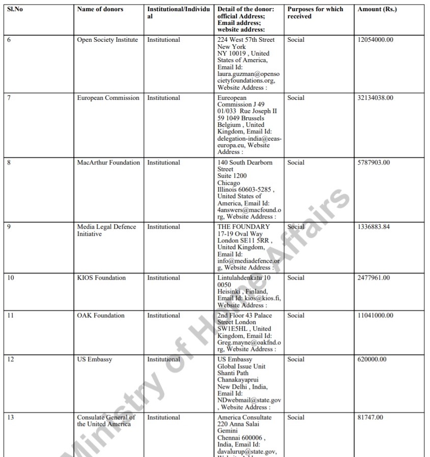 In addition to the Open Society Institute, the HRLN has also received huge funds from Christian Missionary organisations and foreign governments as well. HRLN’s public declaration of funds is also consistent with th Modi government’s crackdown on foreign funded organisations and the insistence of the government on greater transparency.