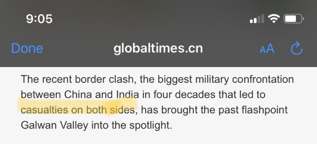 Chinese state media Global Times in an article published on 18th June had claimed that the Galwan Valley standoff is one of the biggest military confrontation between India and China in four decades which has led to casualties on both the sides. Evidently, since it is one of the biggest confrontation, it is quite obvious that the figure of 5 casualties on Chinese side is grossly understated. Moreover, Indian sources have indicated that the casualties figure on the Chinese side is upward of 40 at least.