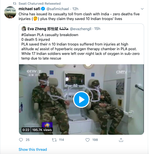 — Swati Chaturvedi (@bainjal) June 20, 2020