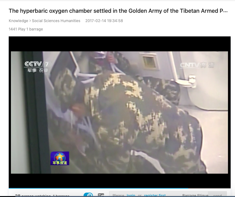 The video was uploaded on a website called bilibili.com which, as per Google Translation, showed video of hyperbaric oxygen chamber in the Golden Army of Tibetan Armed Police. The above video was uploaded on 14th February 2017.