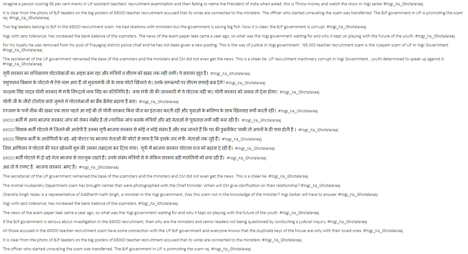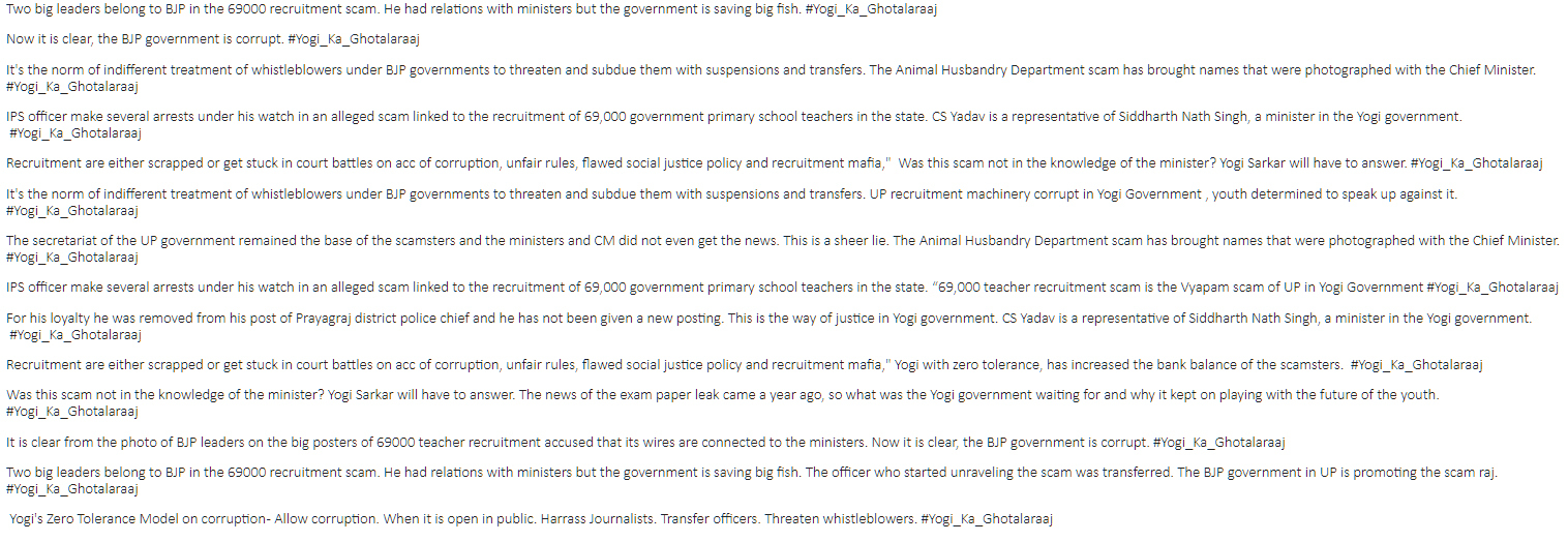 Drawing on from the list of samples and template tweets that could be used to target the Yogi Adityanath government, the online army summoned by the Congress IT cell followed the orders issued to them and unleashed its inorganic social media campaign against the Yogi Adityanath government.