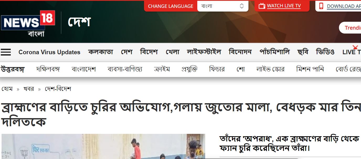 News18 Bengala also reported the same incident with the similar casteist angle.