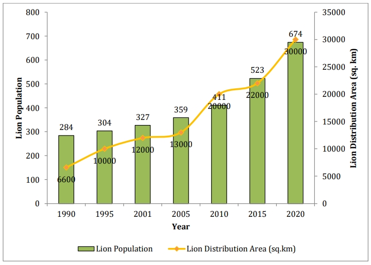 Population of the majestic Asiatic Lion, living in Gujarat’s Gir Forest, is up by almost 29%.