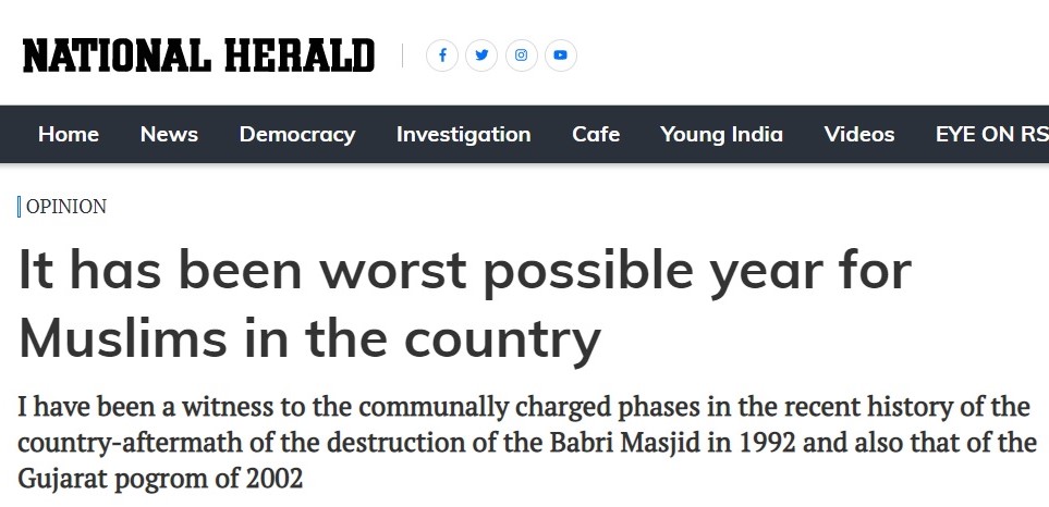 The Congress party has based its entire future on the politics of fear-mongering. In order to gain the support of the Muslim vote-bank, Congress has taken increasingly more radical positions with time. On Friday, the National Herald published an article that said that the first year of Modi Sarkar 2.0 has been the ‘worst possible year’ for Muslims in the country.