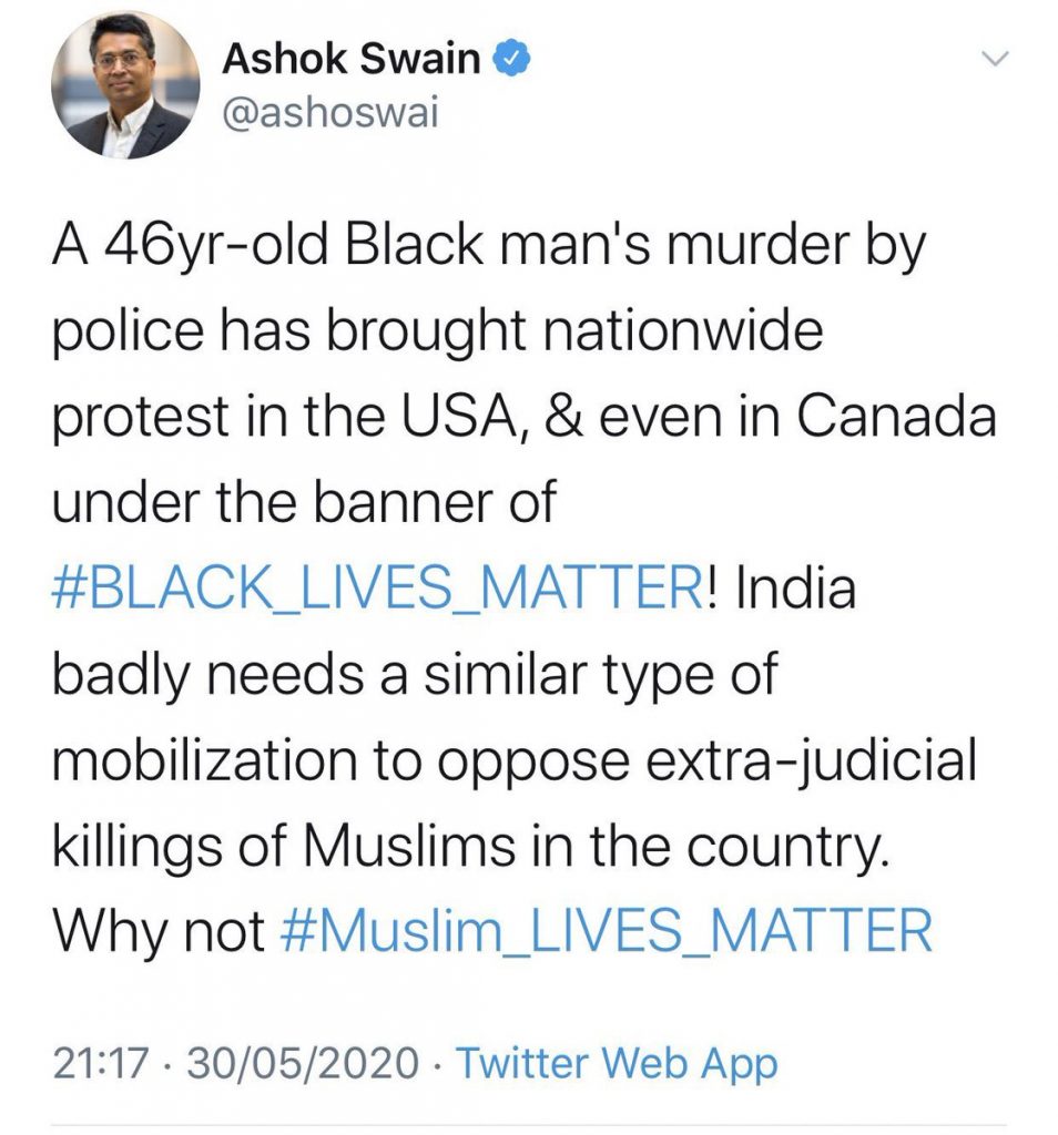 In the wake of the outbreak of protests, a consortium of Indian ‘intellectuals’ are busy trying to incite the sentiments of Muslims. They want Muslims to take to the streets for this so-called ‘Muslim Lives Matter’ protests. Ashok Swain, a professor from Sweden, was quite open about it and stated it explicitly.