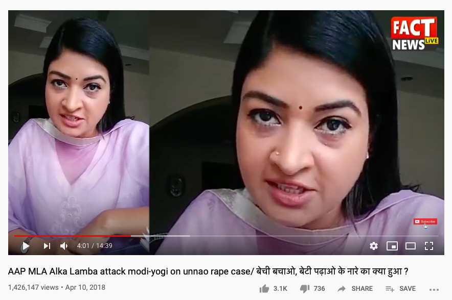 Screenshot from the 2-year-old Alka Lamba video.