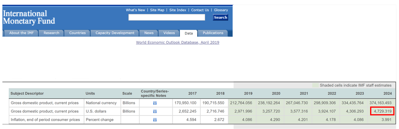 As per the published data from the International Monetary Fund (IMF), India’s GDP in 2018 was $2.7 trillion. IMF forecast for India’s GDP in 2024 is $4.7 trillion. These estimates are in-line with Morgan Stanley which forecasts India’s GDP to touch $5 trillion by 2025.