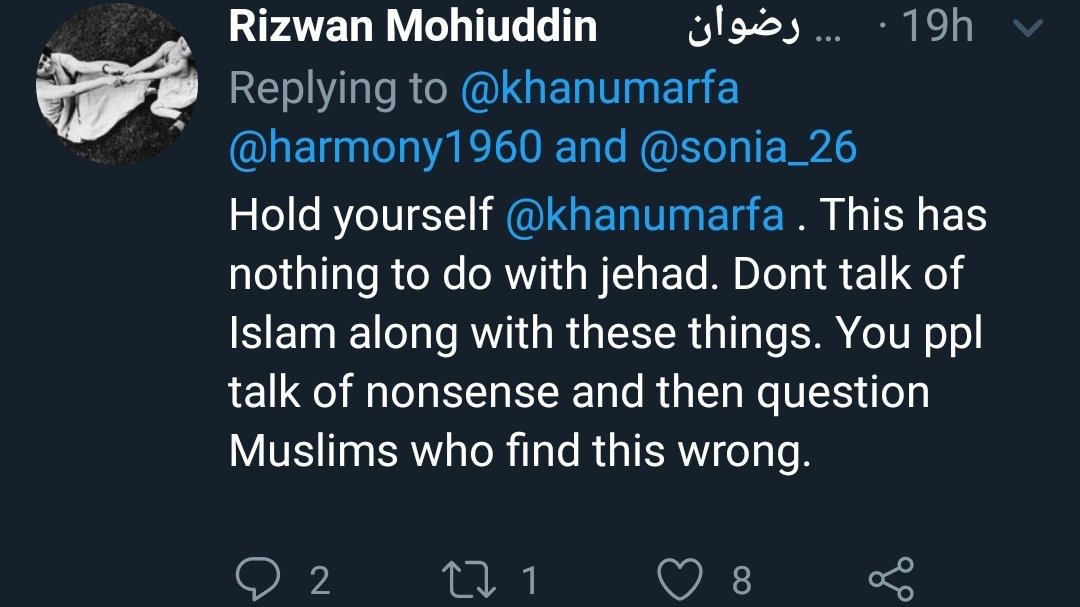 Another intolerant bigot schooled Arfa on jihad, stating that her tweet on Dussehra had nothing to do with jihad. He further enunciated that Islam should not be talked along with “these things”.