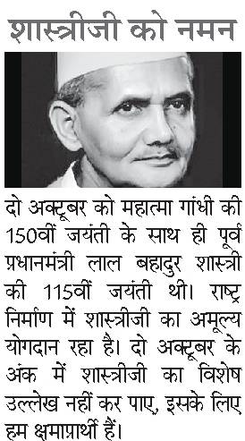 The newspaper said, “On the 2nd of October, along with the 150th birth anniversary of Mahatma Gandhi, it was also the 115th birth anniversary of former Prime Minister Lal Bahadur Shastri. Shastriji has made an invaluable contribution to the development of the nation. We failed to focus on Shastriji on the 2nd of October, therefore we apologize for it.”