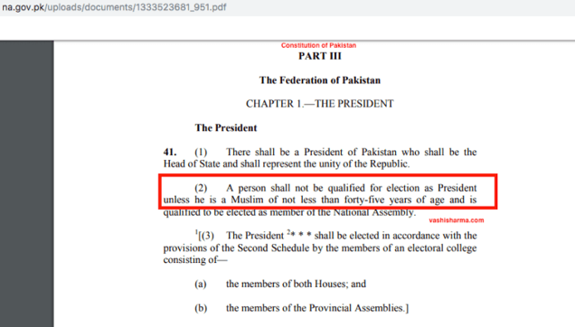 1. Constitution of Pakistan clearly says no Non-Muslim can become President, ever