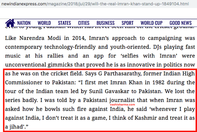 Let’s meet PM Imran Khan – Even in his cricketing days when some Aunties in India wanted to die for him, he saw every match against India as Jihad in Kashmir.